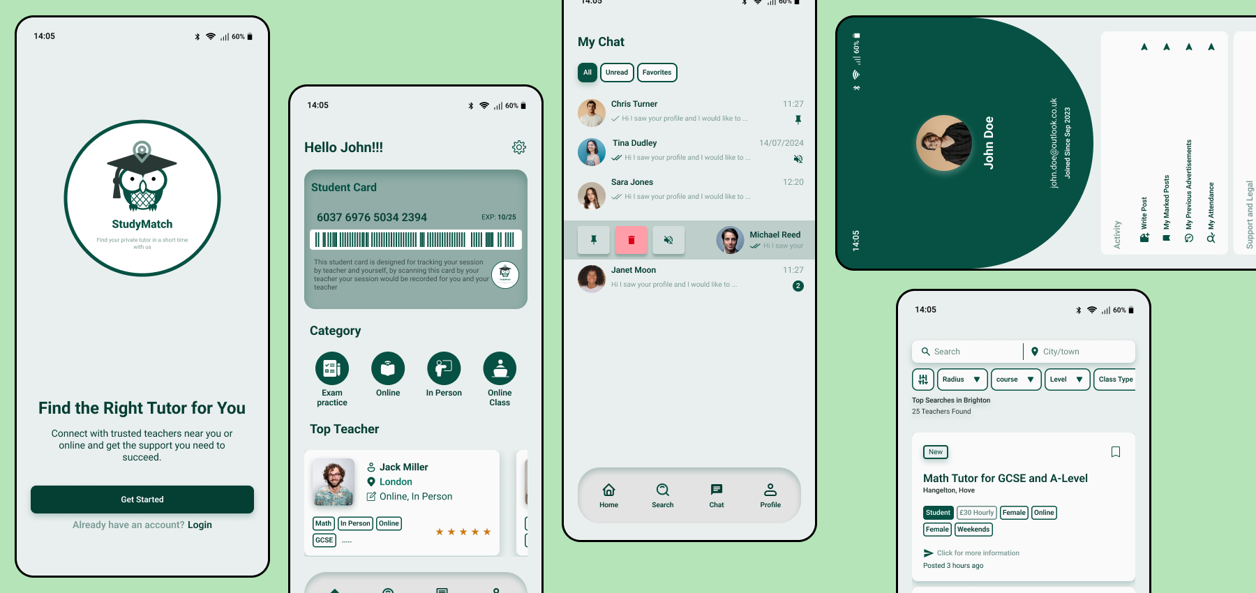 StudyMatch was designed to simplify this process by providing a centralised platform where users can easily search for tutors by subject, location, and learning preference, while communicating safely through a secure messaging system.