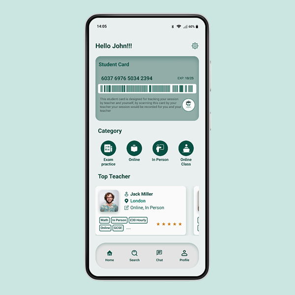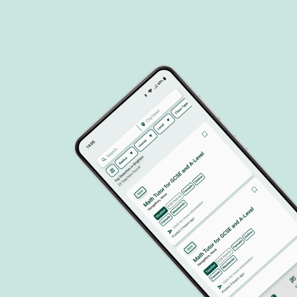 - Search tutors by subject, location, and level (GCSE, A-Level)