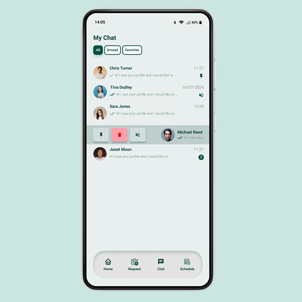 - Push notifications for messages and requests