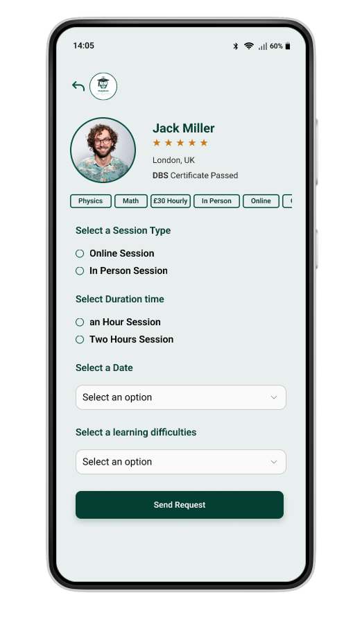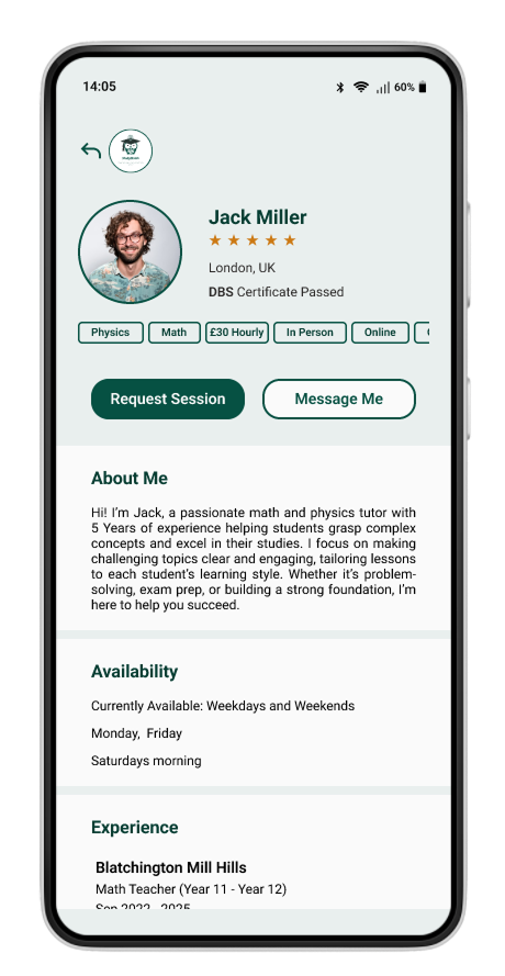 Safety was a key concern, especially for parents. A mandatory DBS certificate requirement was added for tutors, along with a visible verification badge on profiles, increasing trust and confidence in the platform.