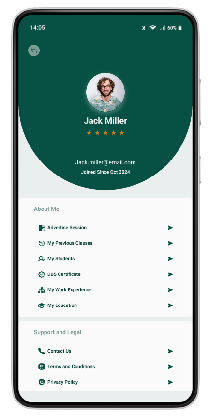 For tutors, the primary goal is to showcase their services and connect with students who are looking for support in their subject areas. Tutors begin by creating and managing their profile, including subjects offered, experience, pricing, and availability.