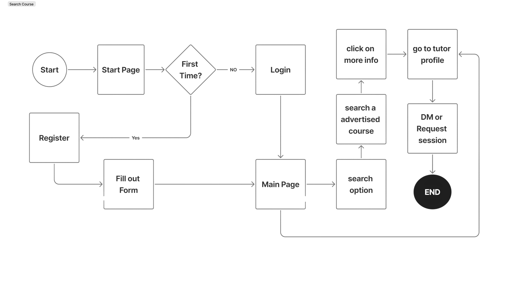To better understand how users would interact with the platform, I mapped the key journeys for both students and tutors. Visualising these flows helped identify potential friction points in the tutor search, communication, and booking process, and guided the creation of a more streamlined experience.