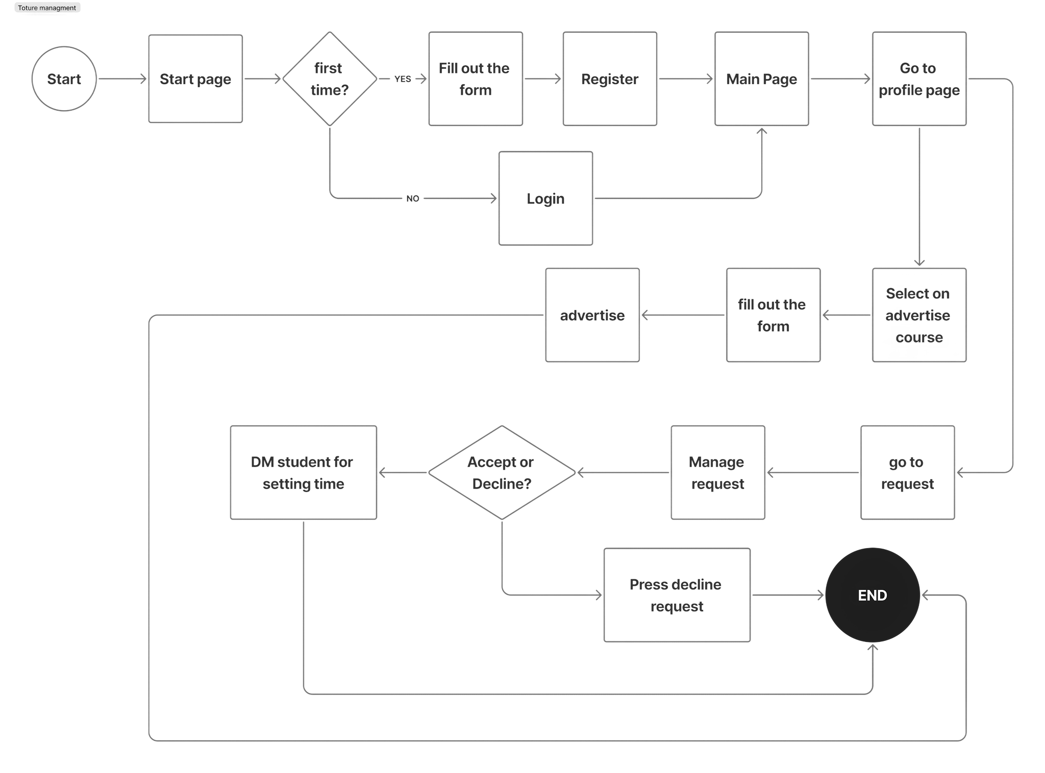 Mapping these flows ensured that both users could easily find, connect, and manage lessons while keeping the platform simple, intuitive, and efficient.