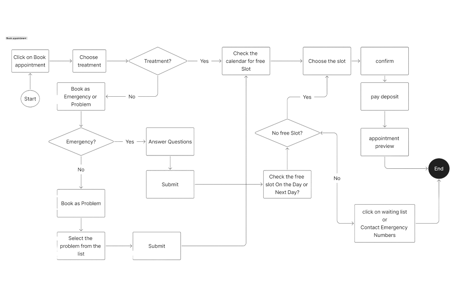 For patients, the primary journey focused on booking an appointment quickly and independently. The goal was to reduce friction by minimising the number of steps required while still providing clear information about appointment types, availability, and payment.